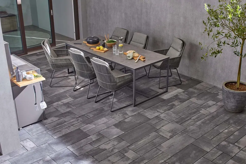 Allee City Pflaster Läuferverband 8 cm Anthrazit mit Microfase