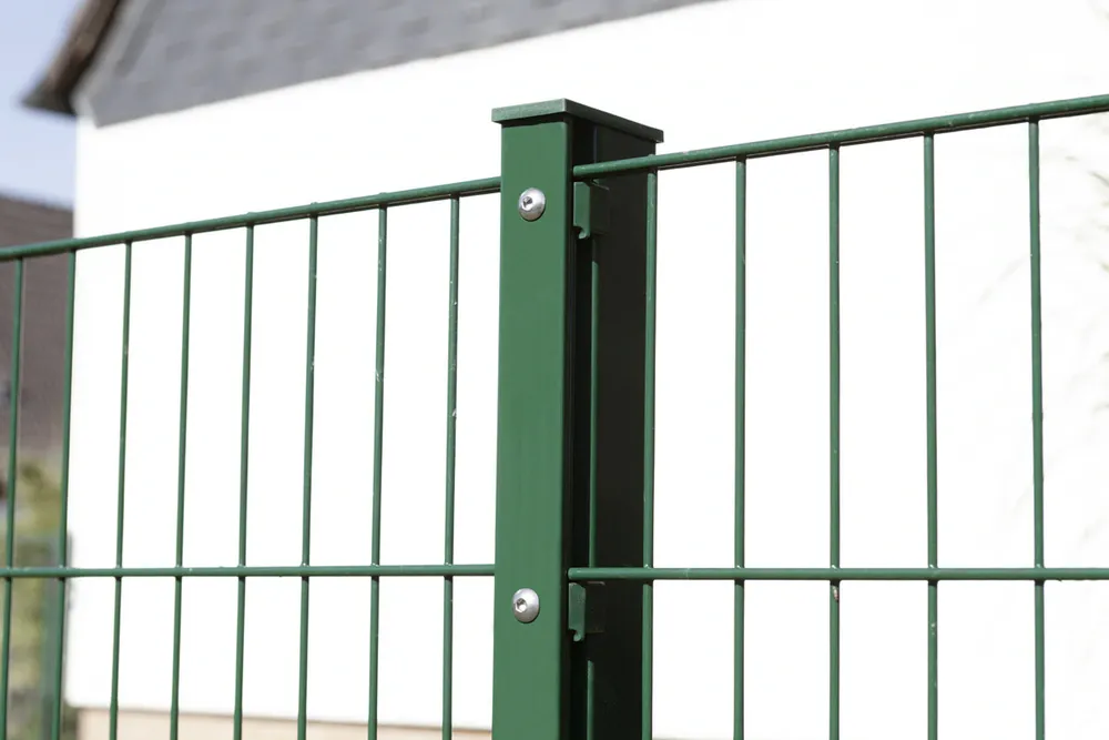 Zaunpfosten für Doppelstabmatte 1230mm moosgrün mit Abdeckleiste