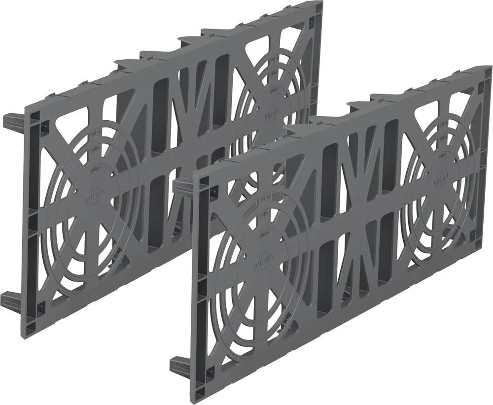 • Die Stirnseiten der EcoBloc Inspect Rigole werden mit Endplatten (Zubehör) geschlossen.